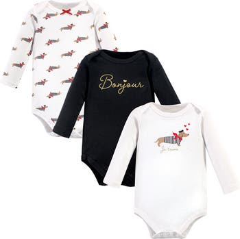 Hudson Baby long-sleeve bodysuits are an essential part of baby's wardrobe. Our bodysuits feature adorable prints, embroideries, stripes and solids and provide a comfortable base layer that's great for pairing with pants, shorts, or even wearing under outfits. Our bodysuits are comfortable and cozy for all-day, everyday wear for your little one.