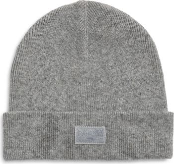 A tonal logo patch adds stealthy brand recognition to a cuffed beanie knit from a recycled-polyester blend enriched with wool.