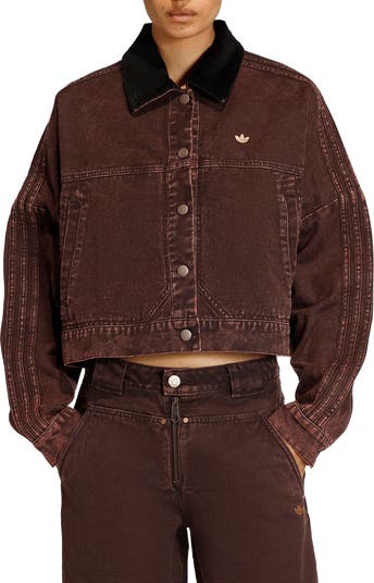 Muted 3-Stripes deliver signature style at the sleeves of this oversized track jacket reimagined in canvas and tipped with a corduroy collar.