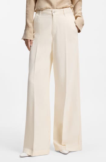 Center creases and slant pockets lend a sartorial polish to these high-waist, wide-leg jeans made from cotton denim softened with a hint of lyocell.