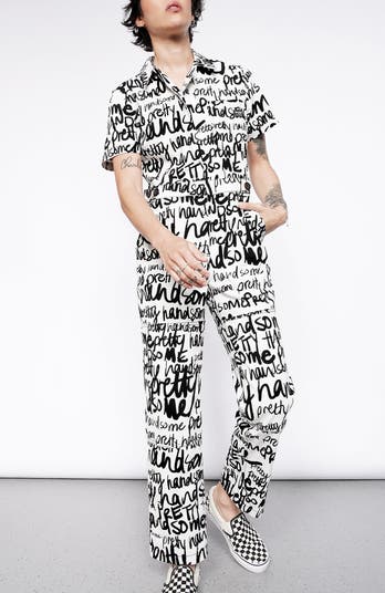 WILDFANG Essential High Waisted Coverall, Main, color, Pretty Handsome Script White