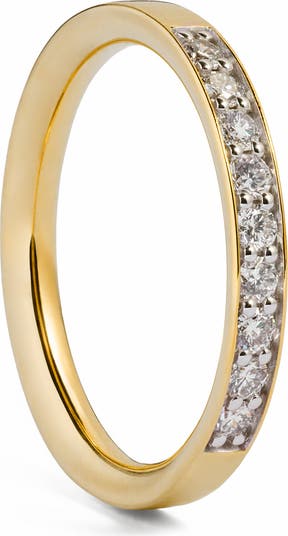Brilliant pavé lab-grown diamonds grace the front curve of this stackable ring crafted in warm 18-karat-gold vermeil.
