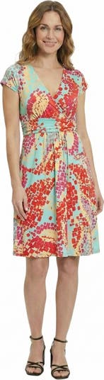 Essential Petite Mosaic V-Neck Cap Sleeve Knee Length A-Line Pocket Dress