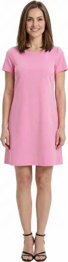 Stay effortlessly chic in this petite short sleeve mini shift dress from 24seven Comfort Apparel. Designed with a round neckline and an easy, relaxed fit, this timeless piece combines comfort and polish. The smooth, slightly textured stretch fabric offers a structured drape that flatters every silhouette. Perfect for work or weekend wear. Machine washable and tumble dry for simple care.