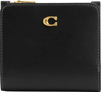 Glinting logo hardware adds a signature flourish to a compact leather case perfect for conveniently securing your monetary essentials.