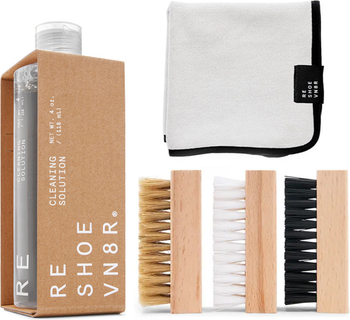 Introducing the Reshoevn8r Essential Shoe Cleaning Kit. Tough on dirt and easy on your wallet, this kit contains everything you need for an effective clean, featuring the world's most effective shoe cleaning solution and a complete set of signature brushes.