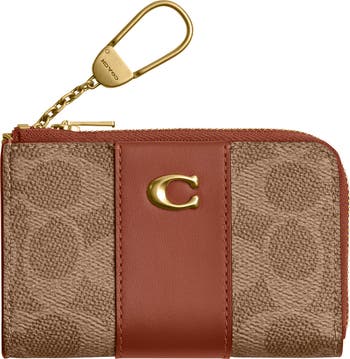 A logo monogram pattern provides an eye-catching contrast to the smooth, rich leather of this compact card case perfect for storing your small essentials.