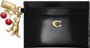Signature motif charms and brushed logo hardware enliven at slim leather case perfect for storing your essential cards.