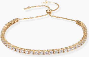- Sterling silver base Genuine gold plating Hypoallergenic Adjustable length: 5.5"–7.5" Hand-set 2mm cubic zirconia Finished with organic e-coating