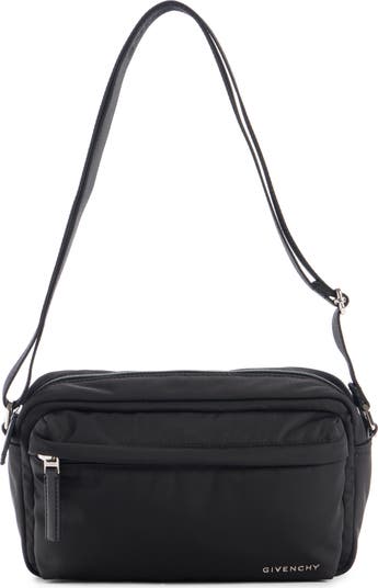 The latest addition to Givenchy's Essential U line, this canvas crossbody is done in a compact camera-bag silhouette slung from a logo-embellished webbing strap.
