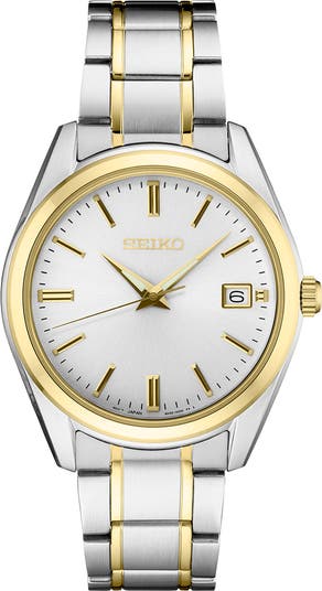 Practical and polished, this Essentials watch lives up to its name with a clean, readable dial, a date window and an adjustable, elegant bracelet.