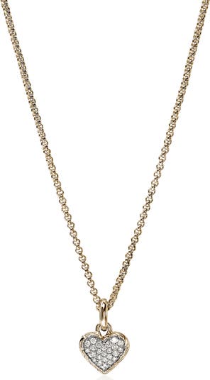 A pavé diamond heart is framed by signature chain carving to bring beaming texture to this romantic necklace handcrafted from 14-karat gold.