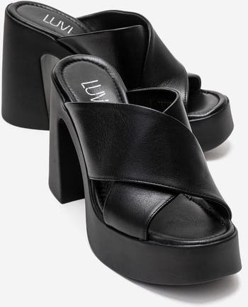 Essenza Leather Platform Block Heel Sandal