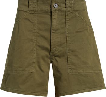 Stretch-cotton twill shorts fit easy through the hips and thighs and are offered with utilitarian-inspired front patch pockets.