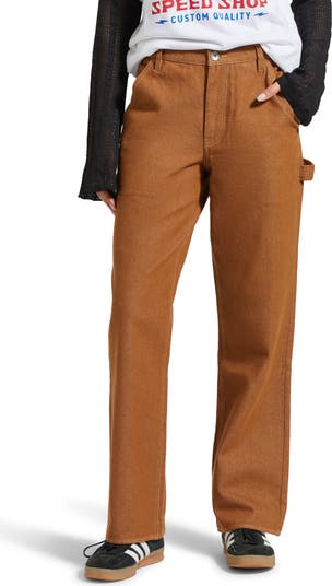 Made from sturdy cotton twill, these earthy brown pants are cut in a trendy wide-leg silhouette and feature utility-inspired details like a hammer loop and tool pockets.
