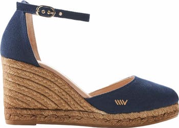 Estartit Canvas Espadrille Wedges: Chic High Wedge Ankle Strap Espadrilles Elevate your style with our stunning Estartit high wedge ankle strap espadrilles. These versatile women's espadrille shoes feature a classic closed, rounded toe and a striking high wedge heel, making them a must-have for any wardrobe, from casual day outings to elegant evening events. Crafted with a beautiful 3.5-inch jute wedge heel and an adjustable buckle strap, these comfortable espadrille wedges are designed to make you stand out. Handmade with precision in Spain, these authentic Spanish espadrilles offer a touch of natural beauty and quality craftsmanship. If you're looking for the perfect pair of summer espadrilles that combine timeless elegance with unparalleled comfort, choose the Estartit. These canvas espadrilles are more than just shoes; they're a statement of effortless chic.