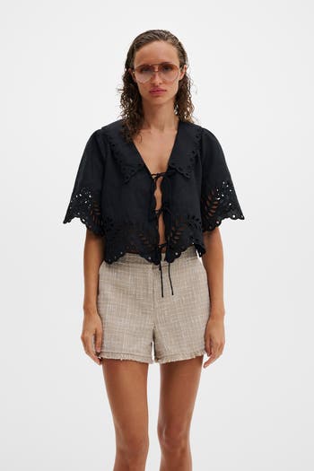 Enhance your wardrobe with our Estela Broderie Anglais Blouse, perfect for both casual and formal occasions. Made from Linen and Viscose blend for ultimate comfort.