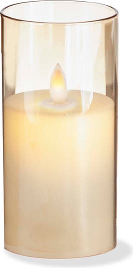 add a touch of sophistication and elegance to your home decor with this estella amber glass hurricane led pillar candle. the candle features a realistic-looking flame that flickers like a real candle. it is made from high-quality wax and plastic, and the amber glass hurricane provides a sophisticated look.