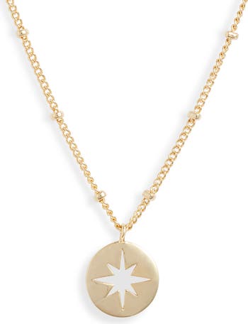 A star cutout gets you in touch with the cosmos from this delicate chain necklace with goldtone plate and polished bead stations.
