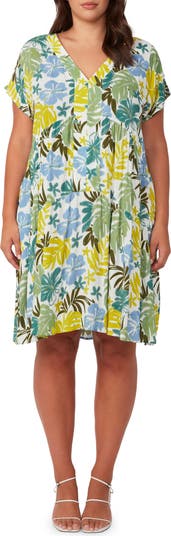 Set off to brunch or the next farmers' market in this sweet shift dress completed by a face-framing V-neck.