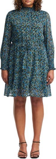 A vibrant floral print is splashed across this airy long-sleeve dress with smocking at the collar and cuffs.