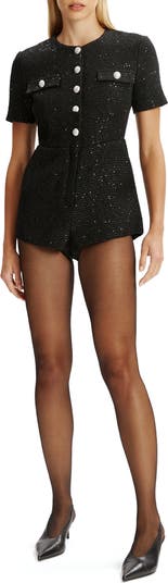 Power dressing just got playful with this bouclé romper featuring sharp tailoring, shimmering texture and statement buttons for a modern twist on classic sophistication.