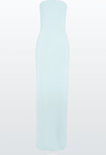 This strapless column gown embodies minimalist sophistication with its sleek, sculpted silhouette. Expertly tailored to skim the body, it creates a statuesque effect that highlights clean lines and precise structure. The absence of embellishment allows the craftsmanship and cut to take centre stage, exuding understated confidence. Ideal for a formal evening affair or a contemporary red carpet moment.