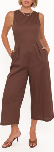 Clean and modern, this sleeveless jumpsuit is tailored from a breezy linen-cotton blend with wide, cropped legs that move with you. The streamlined bodice and invisible back zip create a smooth, polished fit—easy to style for workdays, dinners and everything in between.