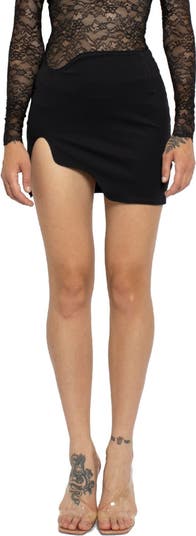 A classic mini skirt with a dramatic twist. Our Esther mini skirt features a chic wave hem and edgy high slit the perfect combination of sophistication and style. Made with the finest fabrics perfect for hugging your body just right, this mini skirt will elevate your wardrobe to a whole new level. Embrace your inner fashionista and make a statement with this must-have piece.