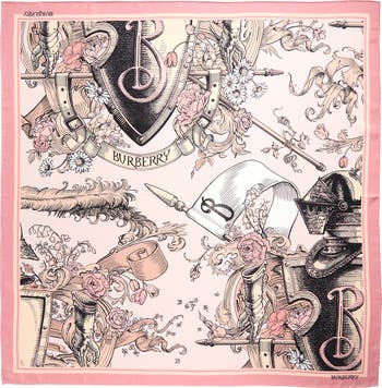 Hand-drawn illustrations of Burberry's iconic Equestrian Knight Design—an archival motif crowdsourced from a public competition in 1901—bring heritage character to this lustrous Italian-silk twill scarf framed in an elegant solid border.