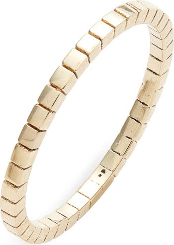 A geometric design adds subtle textural intrigue to a 14-karat-gold ring that's an elegant accessory on its own or as part of a stack.