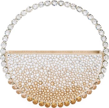 An all-encompassing handle sends prong-set crystals around the circumference of this beautifully embellished clutch saturated in an ombré palette.