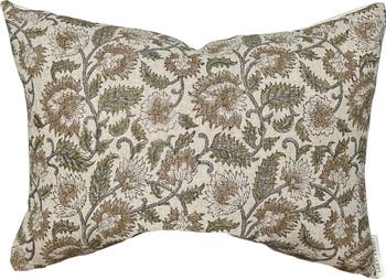 Ethel | Natural Tan Sage Floral Handblock Pillow Cover