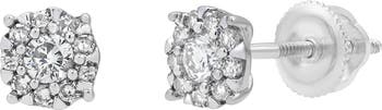 These 0.25 carat diamond earrings feature a delicate flower cluster design meticulously set in 14k white gold with a screwback setting. Their elegant arrangement highlights the timeless brilliance of the diamonds.