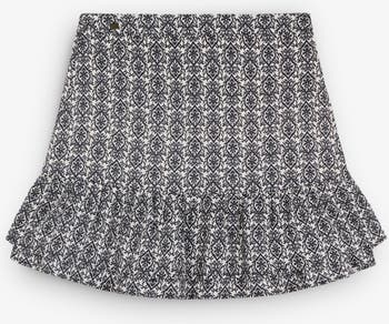 Printed mini skirt made of 100% viscose and side fastening and ruffles at the hem
