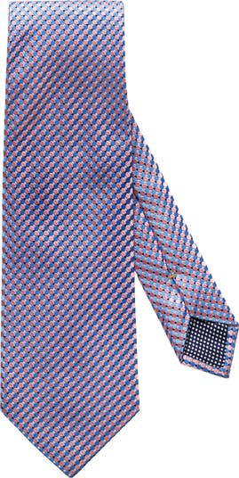 A crisp, understated dot texture defines a rich tie cut from lustrous silk.
