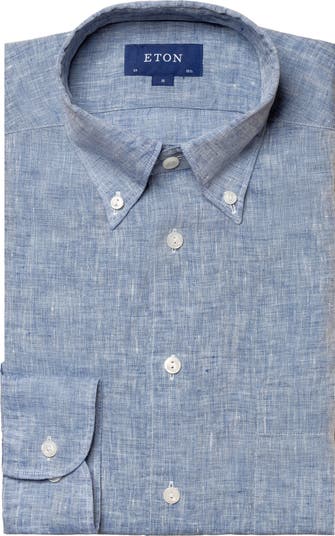 A heathered design adds laid-back charm to a lightweight linen shirt that's washed for extra softness.