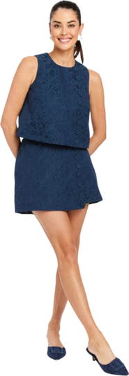 Sleeveless tank top with scallop detailing | Crew neckline | Scallops along wearer’s left with coordinating self-covered buttons | Concealed zipper closure at center back | Cotton jacquard fabrication