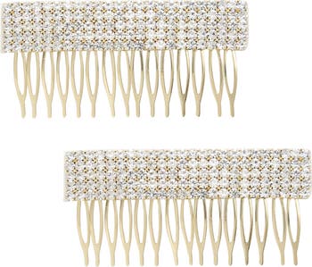Glinting crystals in golden settings illuminate this pair of hair combs designed to add extra sparkle to your tresses.