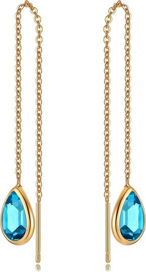 Colorful cubic zirconia add droplets of color to chain-link threader earrings plated in 18-karat gold.