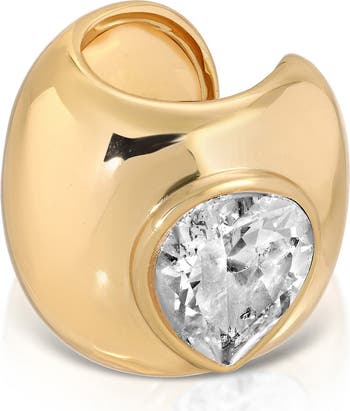 A bezel-set cubic zirconia gives a beam of light to this chunky ear cuff plated in 18-karat gold.