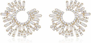 Circular and baguette-cut crystals bring radiating color to these statement-making frontal hoops.
