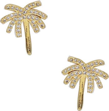 Flaunt some vacation-minded style with these shiny, whimsical palm tree studs alight with twinkling pavé fronds.