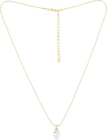 A single stone pendant adds a dazzling touch to a dainty necklace plated in 18-karat gold.