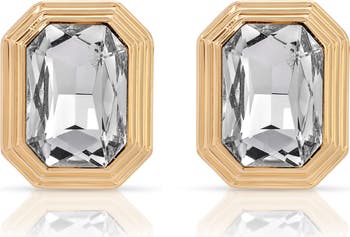 Sparkling crystals provide a stunning focal point for Art Deco–inspired studs plated in gleaming 18-karat gold.