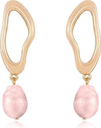 These earrings offer a chic blend of modern design and classic elegance. The pearls dangle gracefully from 18k gold-plated abstract circles, creating a sophisticated look. Versatile and stylish, they’re perfect for adding a touch of refinement to any outfit.