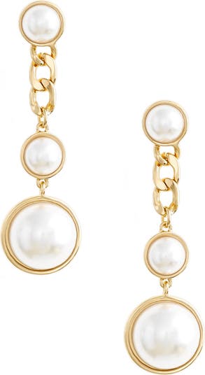 Make an elegant statement in these gleaming drop earrings plated in 18-karat gold plate and accented with lustrous imitation pearls.