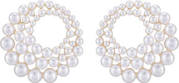 Graduated imitation pearls shape these glowing frontal hoops that balance classic style with contemporary design.