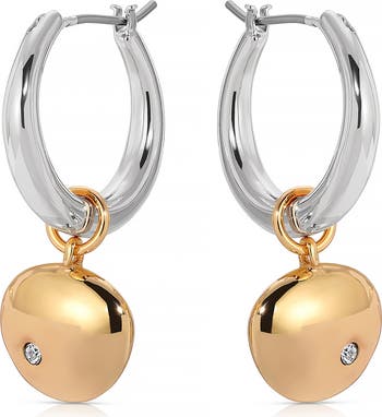 Pebble charms inset with cubic zirconia dangle from these slim hoop earrings.
