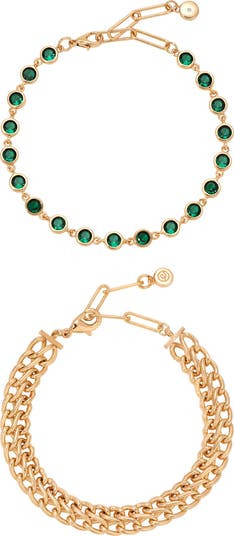 A set of two intricately designed bracelets add glamorous shine to your wrist stack.